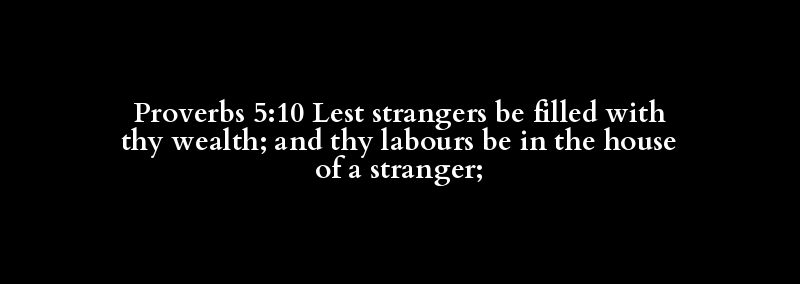 Proverbs 5:10 Lest strangers be filled with thy wealth; and thy labours be in the house of a stranger;