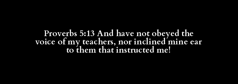 Proverbs 5:13 And have not obeyed the voice of my teachers, nor inclined mine ear to them that instructed me!