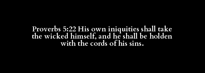 Proverbs 5:22 His own iniquities shall take the wicked himself, and he shall be holden with the cords of his sins.