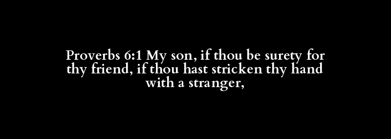Proverbs 6:1 My son, if thou be surety for thy friend, if thou hast stricken thy hand with a stranger,
