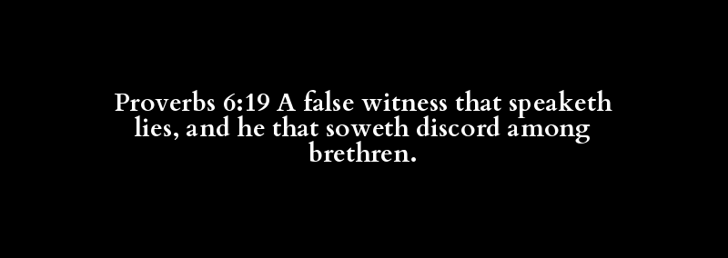 Proverbs 6:19 A false witness that speaketh lies, and he that soweth discord among brethren.