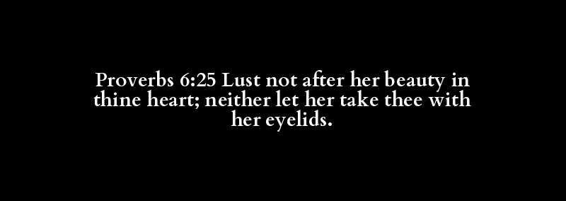 Proverbs 6:25 Lust not after her beauty in thine heart; neither let her take thee with her eyelids.