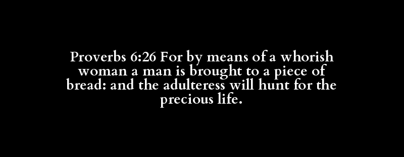 Proverbs 6:26 For by means of a whorish woman a man is brought to a piece of bread: and the adulteress will hunt for the precious life.