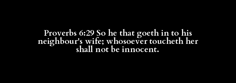 Proverbs 6:29 So he that goeth in to his neighbour's wife; whosoever toucheth her shall not be innocent.