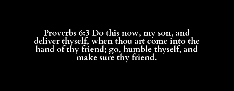 Proverbs 6:3 Do this now, my son, and deliver thyself, when thou art come into the hand of thy friend; go, humble thyself, and make sure thy friend.
