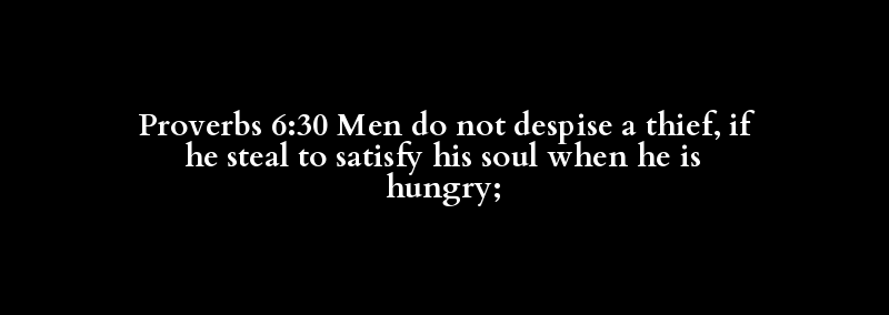 Proverbs 6:30 Men do not despise a thief, if he steal to satisfy his soul when he is hungry;
