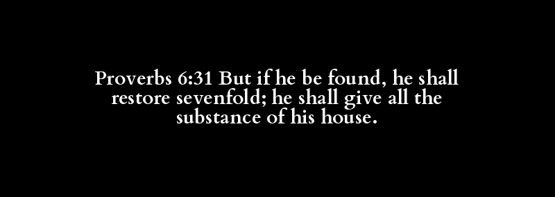 Proverbs 6:31 But if he be found, he shall restore sevenfold; he shall give all the substance of his house.
