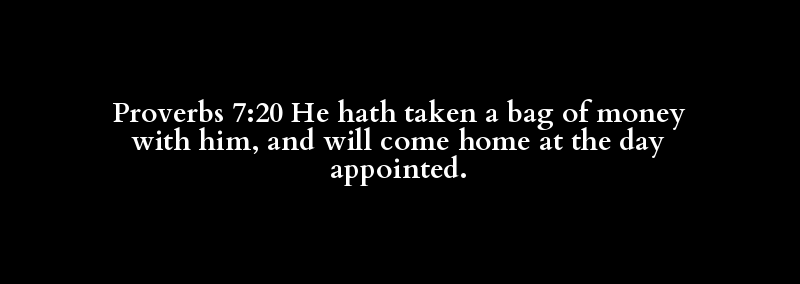 Proverbs 7:20 He hath taken a bag of money with him, and will come home at the day appointed.