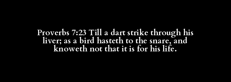 Proverbs 7:23 Till a dart strike through his liver; as a bird hasteth to the snare, and knoweth not that it is for his life.