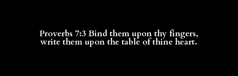 Proverbs 7:3 Bind them upon thy fingers, write them upon the table of thine heart.