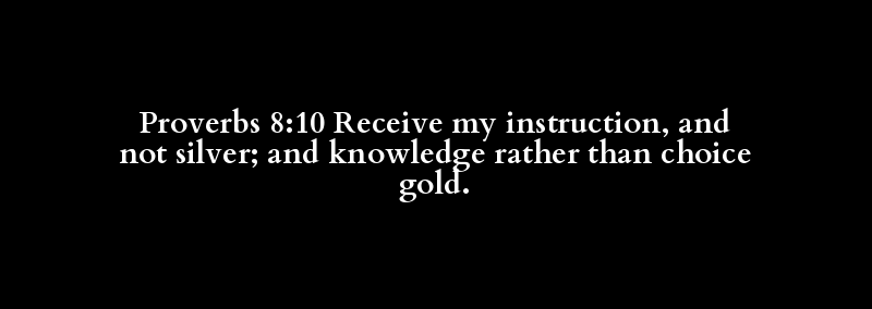 Proverbs 8:10 Receive my instruction, and not silver; and knowledge rather than choice gold.
