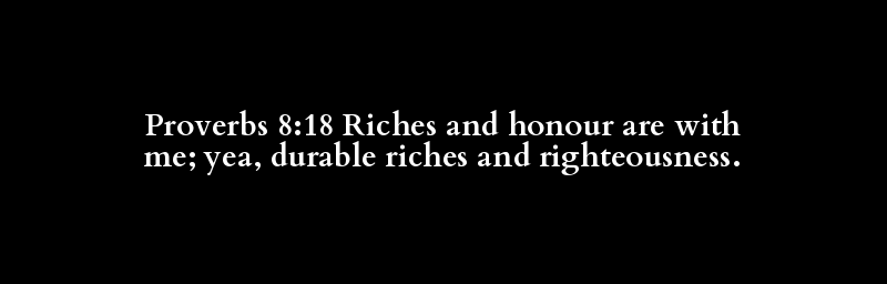 Proverbs 8:18 Riches and honour are with me; yea, durable riches and righteousness.