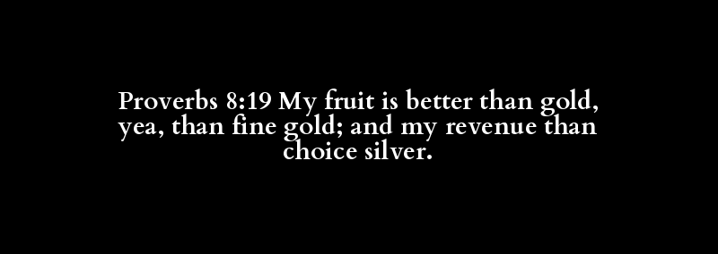 Proverbs 8:19 My fruit is better than gold, yea, than fine gold; and my revenue than choice silver.