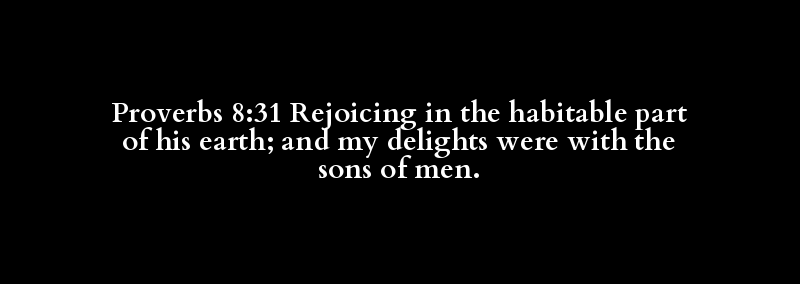 Proverbs 8:31 Rejoicing in the habitable part of his earth; and my delights were with the sons of men.