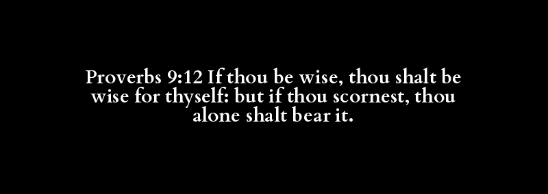 Proverbs 9:12 If thou be wise, thou shalt be wise for thyself: but if thou scornest, thou alone shalt bear it.