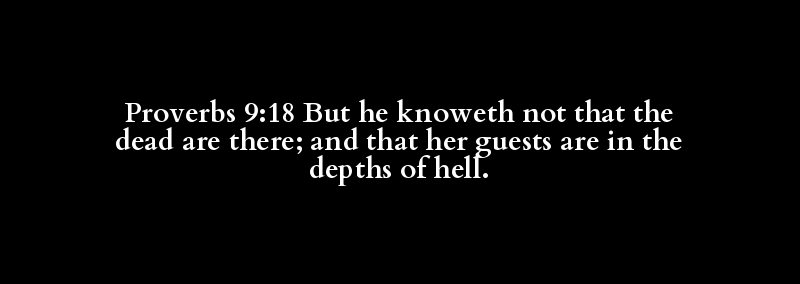 Proverbs 9:18 But he knoweth not that the dead are there; and that her guests are in the depths of hell.