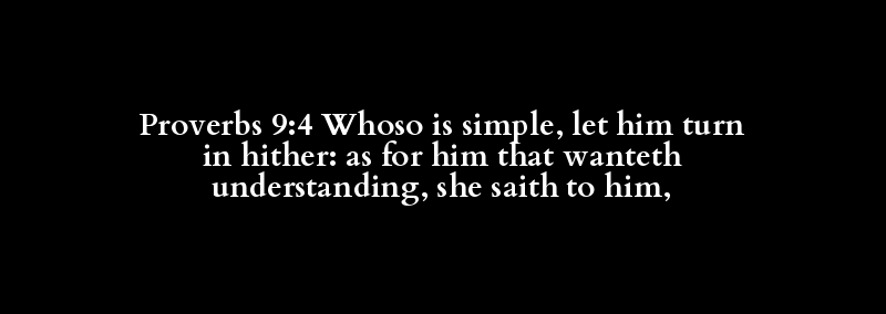 Proverbs 9:4 Whoso is simple, let him turn in hither: as for him that wanteth understanding, she saith to him,
