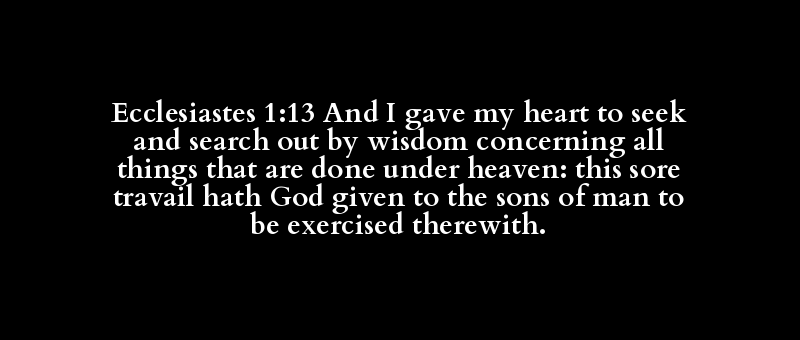 Ecclesiastes 1:13 And I gave my heart to seek and search out by wisdom concerning all things that are done under heaven: this sore travail hath God given to the sons of man to be exercised therewith.