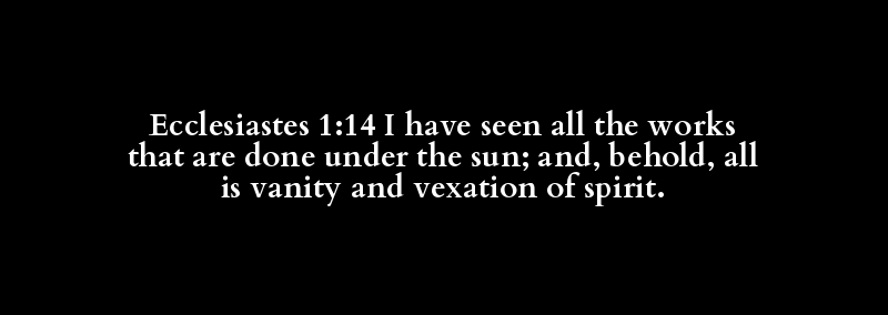 Ecclesiastes 1:14 I have seen all the works that are done under the sun; and, behold, all is vanity and vexation of spirit.