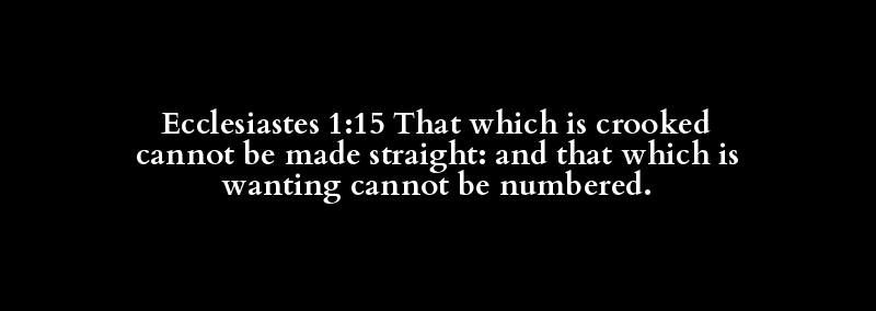 Ecclesiastes 1:15 That which is crooked cannot be made straight: and that which is wanting cannot be numbered.