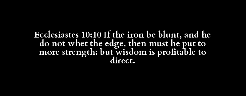 Ecclesiastes 10:10 If the iron be blunt, and he do not whet the edge, then must he put to more strength: but wisdom is profitable to direct.