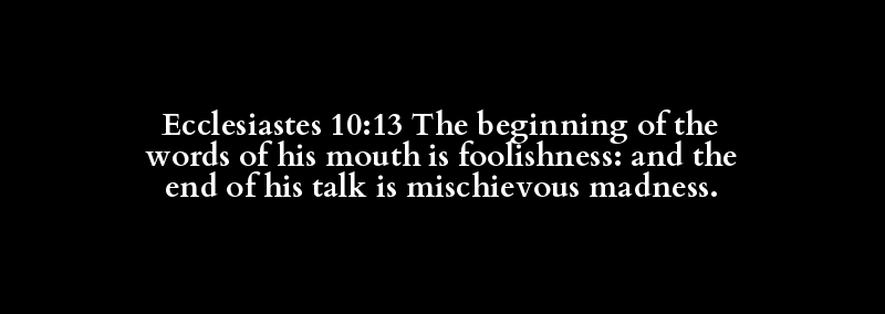 Ecclesiastes 10:13 The beginning of the words of his mouth is foolishness: and the end of his talk is mischievous madness.