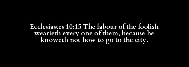 Ecclesiastes 10:15 The labour of the foolish wearieth every one of them, because he knoweth not how to go to the city.