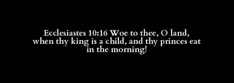 Ecclesiastes 10:16 Woe to thee, O land, when thy king is a child, and thy princes eat in the morning!