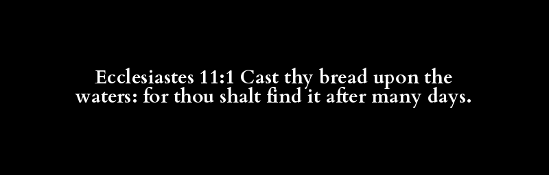 Ecclesiastes 11:1 Cast thy bread upon the waters: for thou shalt find it after many days.
