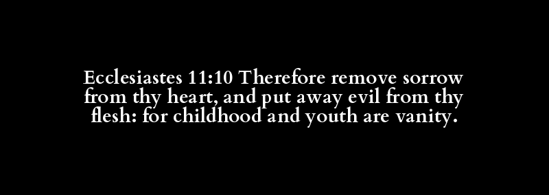 Ecclesiastes 11:10 Therefore remove sorrow from thy heart, and put away evil from thy flesh: for childhood and youth are vanity.