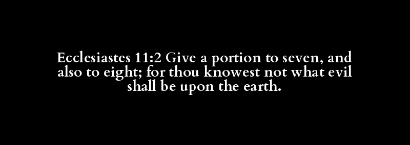 Ecclesiastes 11:2 Give a portion to seven, and also to eight; for thou knowest not what evil shall be upon the earth.