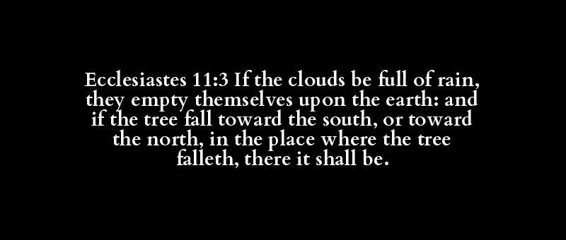 Ecclesiastes 11:3 If the clouds be full of rain, they empty themselves upon the earth: and if the tree fall toward the south, or toward the north, in the place where the tree falleth, there it shall be.
