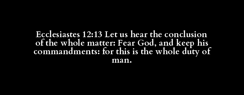 Ecclesiastes 12:13 Let us hear the conclusion of the whole matter: Fear God, and keep his commandments: for this is the whole duty of man.