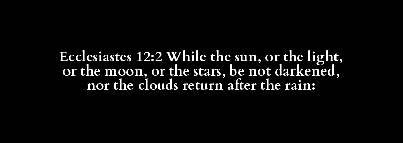 Ecclesiastes 12:2 While the sun, or the light, or the moon, or the stars, be not darkened, nor the clouds return after the rain: