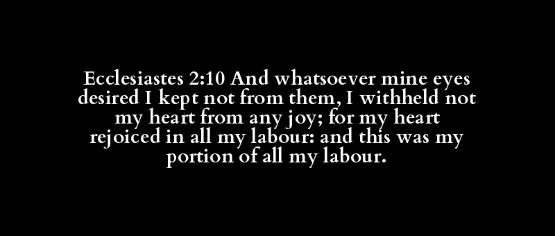 Ecclesiastes 2:10 And whatsoever mine eyes desired I kept not from them, I withheld not my heart from any joy; for my heart rejoiced in all my labour: and this was my portion of all my labour.