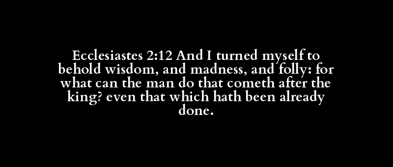 Ecclesiastes 2:12 And I turned myself to behold wisdom, and madness, and folly: for what can the man do that cometh after the king? even that which hath been already done.