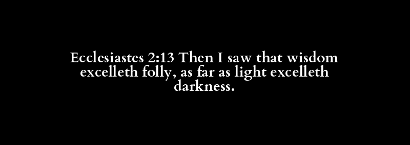 Ecclesiastes 2:13 Then I saw that wisdom excelleth folly, as far as light excelleth darkness.