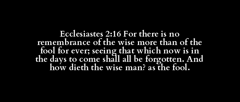 Ecclesiastes 2:16 For there is no remembrance of the wise more than of the fool for ever; seeing that which now is in the days to come shall all be forgotten. And how dieth the wise man? as the fool.