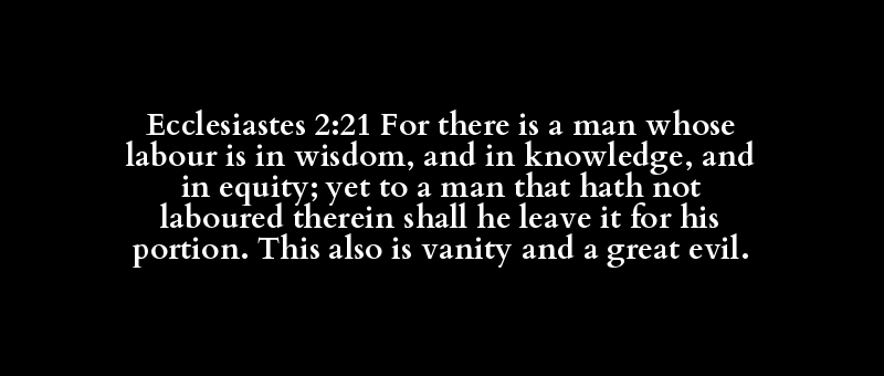 Ecclesiastes 2:21 For there is a man whose labour is in wisdom, and in knowledge, and in equity; yet to a man that hath not laboured therein shall he leave it for his portion. This also is vanity and a great evil.