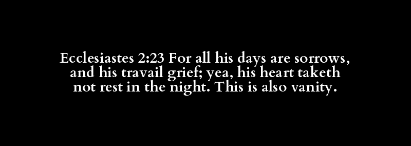 Ecclesiastes 2:23 For all his days are sorrows, and his travail grief; yea, his heart taketh not rest in the night. This is also vanity.