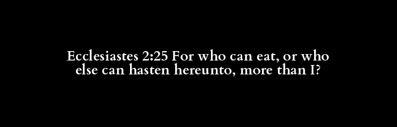 Ecclesiastes 2:25 For who can eat, or who else can hasten hereunto, more than I?