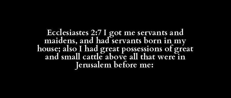 Ecclesiastes 2:7 I got me servants and maidens, and had servants born in my house; also I had great possessions of great and small cattle above all that were in Jerusalem before me: