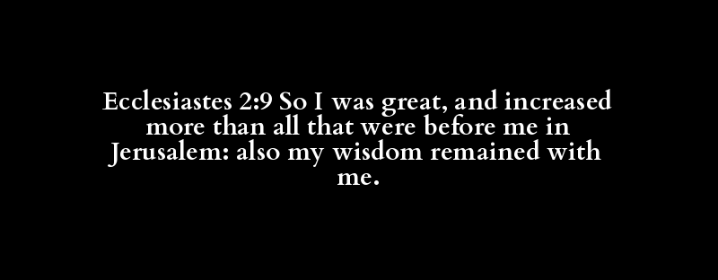 Ecclesiastes 2:9 So I was great, and increased more than all that were before me in Jerusalem: also my wisdom remained with me.