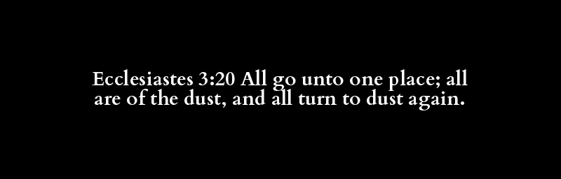 Ecclesiastes 3:20 All go unto one place; all are of the dust, and all turn to dust again.