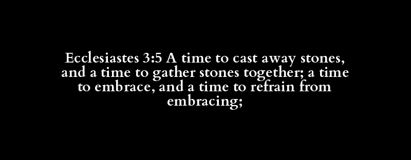 | עֵת | שָׁלַךְ | אֶבֶן | עֵת | כָּנַס | אֶבֶן | כָּנַס | עֵת | חָבַק | עֵת | רָחַק | חָבַק |