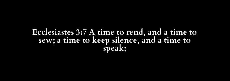 Ecclesiastes 3:7 A time to rend, and a time to sew; a time to keep silence, and a time to speak;