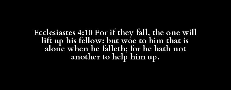 Ecclesiastes 4:10 For if they fall, the one will lift up his fellow: but woe to him that is alone when he falleth; for he hath not another to help him up.