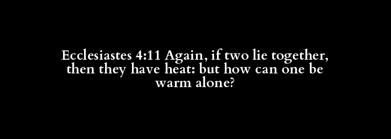 Ecclesiastes 4:11 Again, if two lie together, then they have heat: but how can one be warm alone?