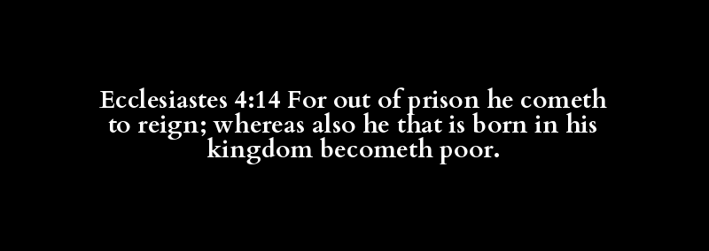 Ecclesiastes 4:14 For out of prison he cometh to reign; whereas also he that is born in his kingdom becometh poor.