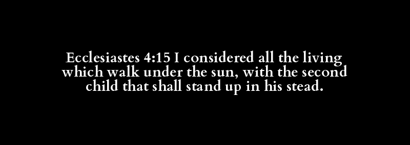 Ecclesiastes 4:15 I considered all the living which walk under the sun, with the second child that shall stand up in his stead.